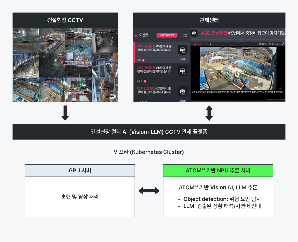 - NPU 서버와 멀티모달 AI 모델 파이프라인으로 지능형 관제 솔루션 구현