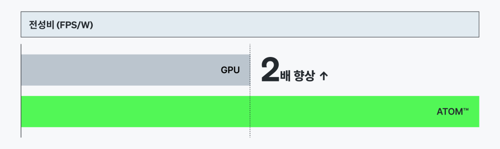 - 서비스 품질 확보 및 TCO 절감 효과 확인: 전성비(FPS/W) 2배 개선, 정확도 GPGPU와 동등 수준 달성