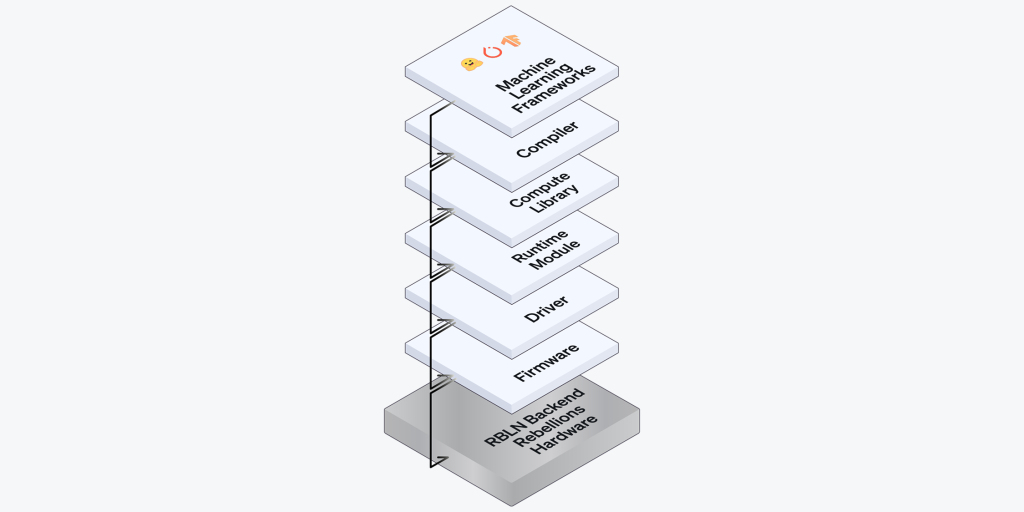 - 모듈형 컴파일러 스택: 적응성은 모듈성에서 시작됩니다. 리벨리온의 컴파일러는 200개 이상의 모델을 지원하는 풍부한 연산 프리미티브 라이브러리를 갖추고 있으며, 트랜스포머(Transformer), 컨볼루션, 디퓨전(Diffusion) 모델을 모두 처리할 수 있는 프론트엔드, 그리고 하드웨어 최적화 코드를 자동 생성하는 백엔드로 구성되어 있습니다. 개별 튜닝 없이도 모델별 커널을 효율적으로 변환합니다.