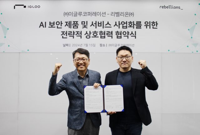 AI반도체 스타트업 리벨리온(대표 박성현, rebellions.ai)이 AI 기반 보안 운영·분석 플랫폼 기업 이글루코퍼레이션(대표 이득춘, www.igloo.co.kr)과 7월 15일 이글루코퍼레이션 사옥에서 전략적 제휴를 맺고 AI 보안 제품 및 서비스 사업 분야에서 협력하기로 했다.